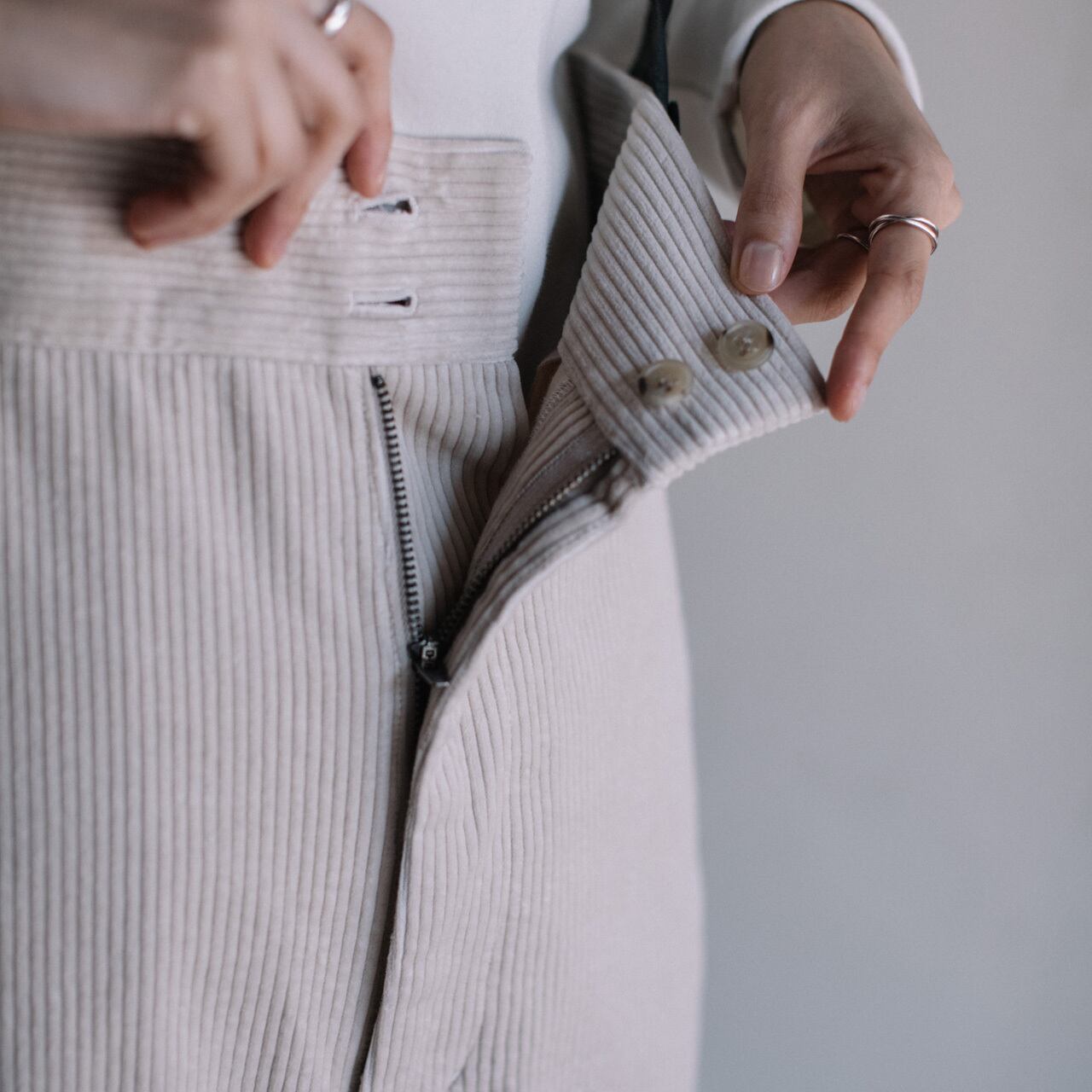 パンツは中厚手の太畝コーデュロイを使用。秋から春にかけての長い期間着用いただけます。