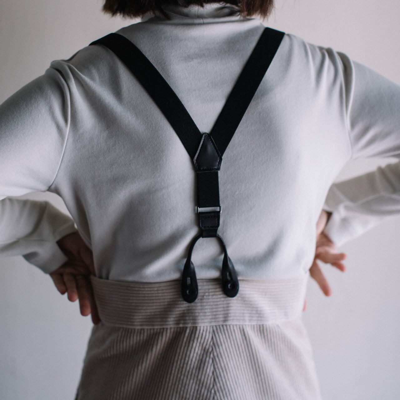 サスペンダーは部分的にレザーを使用し上質に仕上げました。