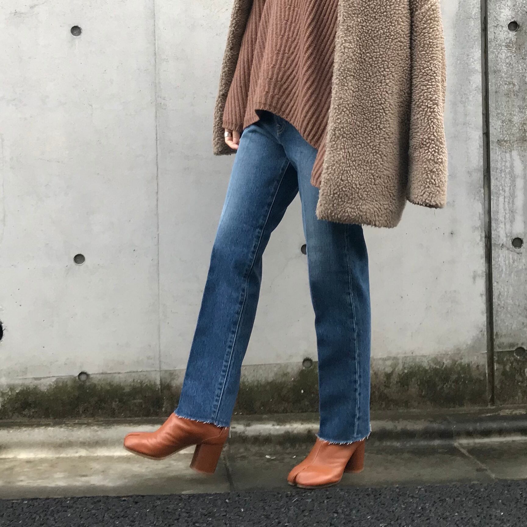 ヴィンテージライクな色落ちと切りっぱなしデザインも気分。