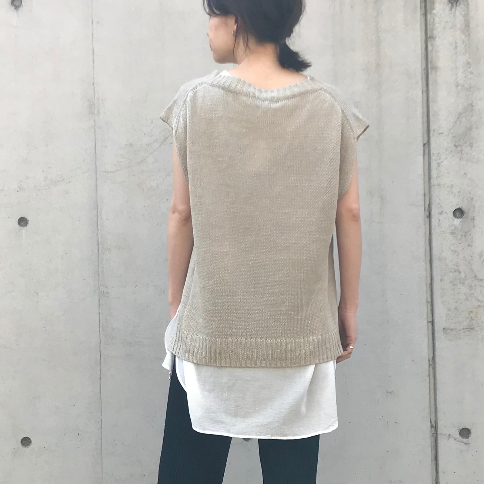 インナータンクとオーバーサイズのリネンベストがセットになったトップス。